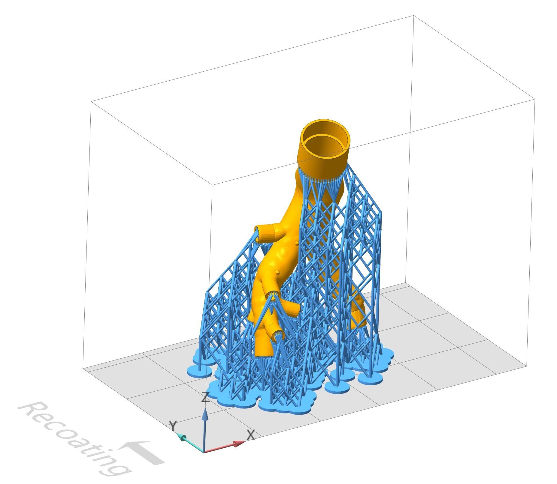 ▲心血管动脉模型摆放在VoxelDance Additive软件中,并添加智能支撑结构